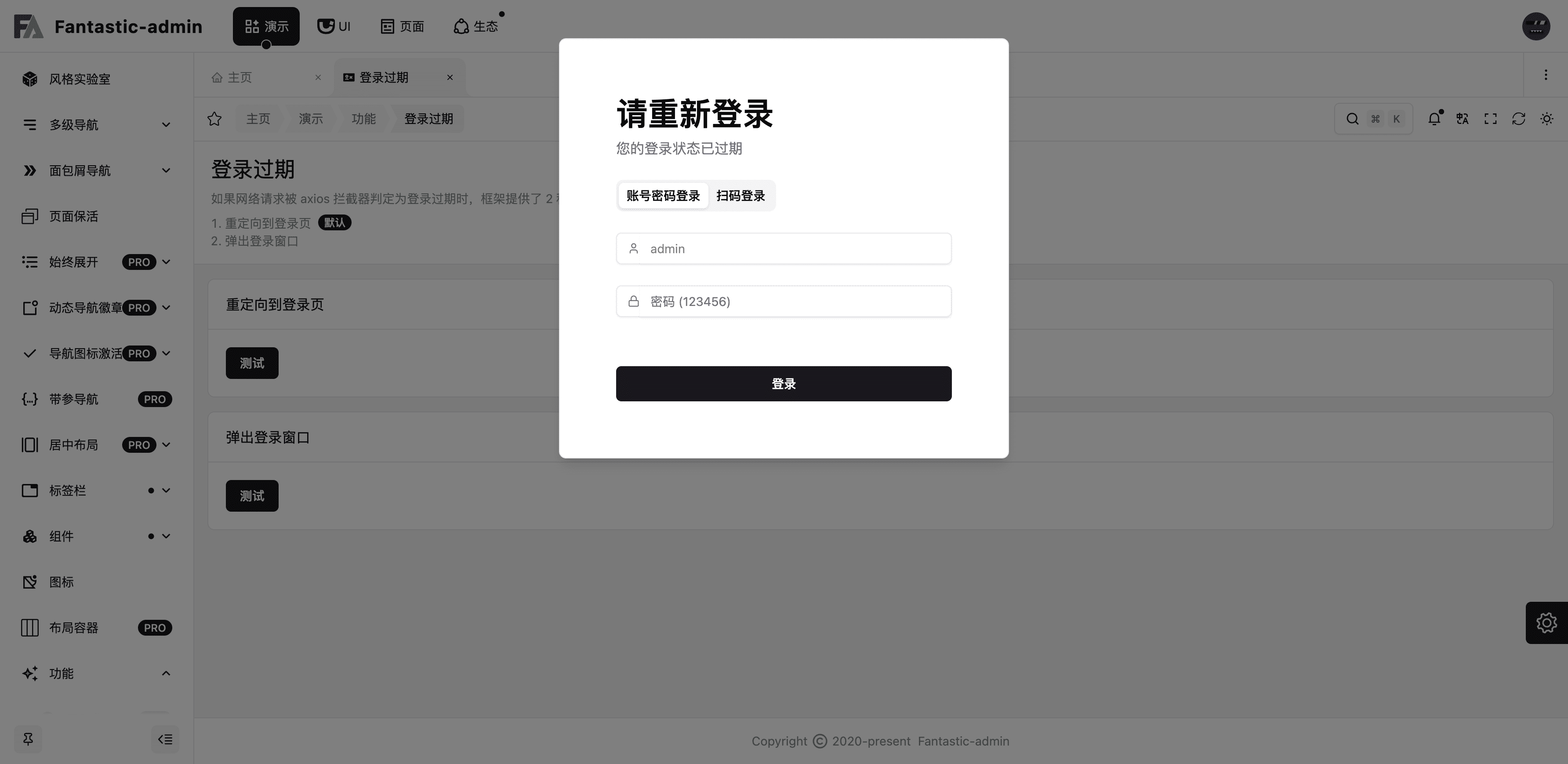 切换为弹窗模式后,登录过期将不会跳转到登录页,但重新登录表单需要开发者自行扩展,相关文件为 apps/<app>/src/components/AppAccountForm/login-again.vue 。