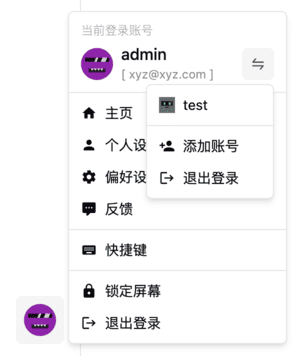 多账号管理的原理是将已登录账号的 token 以相关信息记录在浏览器 localStorage 中,从而实现快速切换,可在 apps/<app>/src/store/modules/app/account.ts 中修改记录方式。