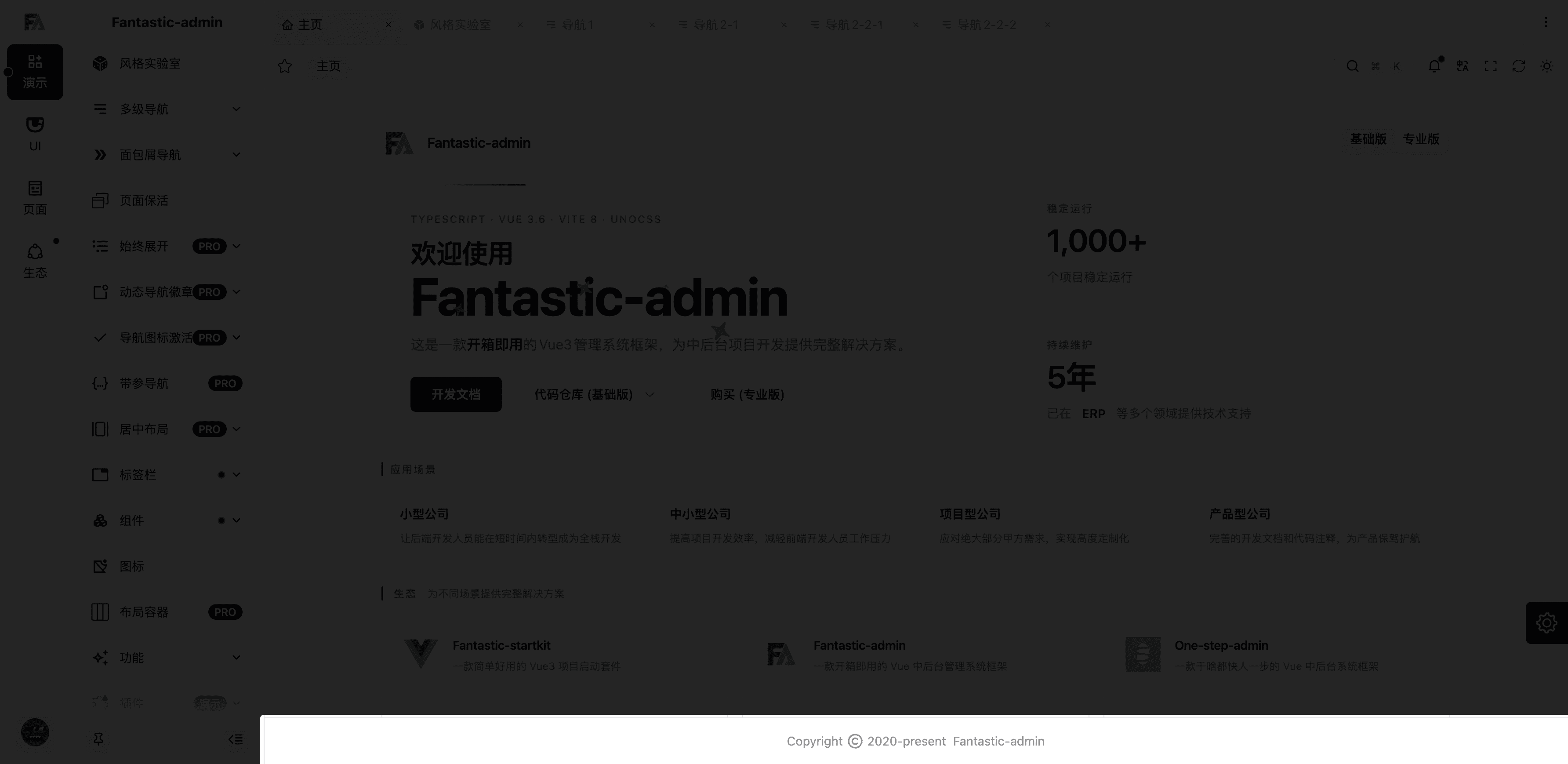 路由配置中的 meta.copyright 优先级会比应用配置更高,意味着你可以给每个页面单独控制版权信息的显示或隐藏。