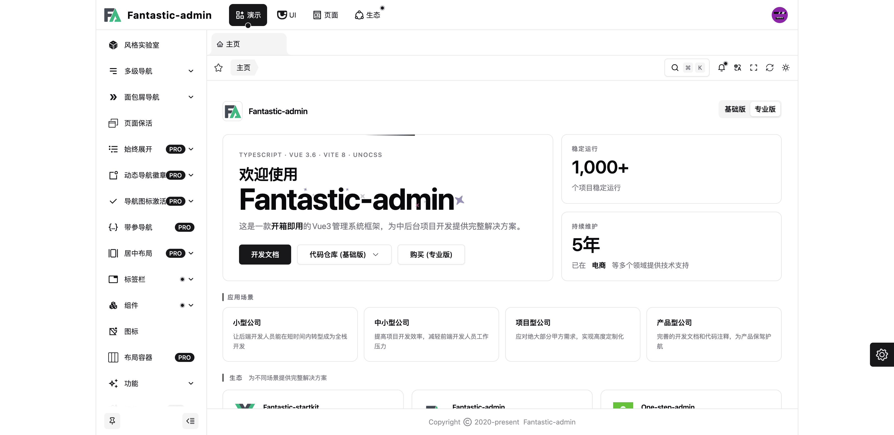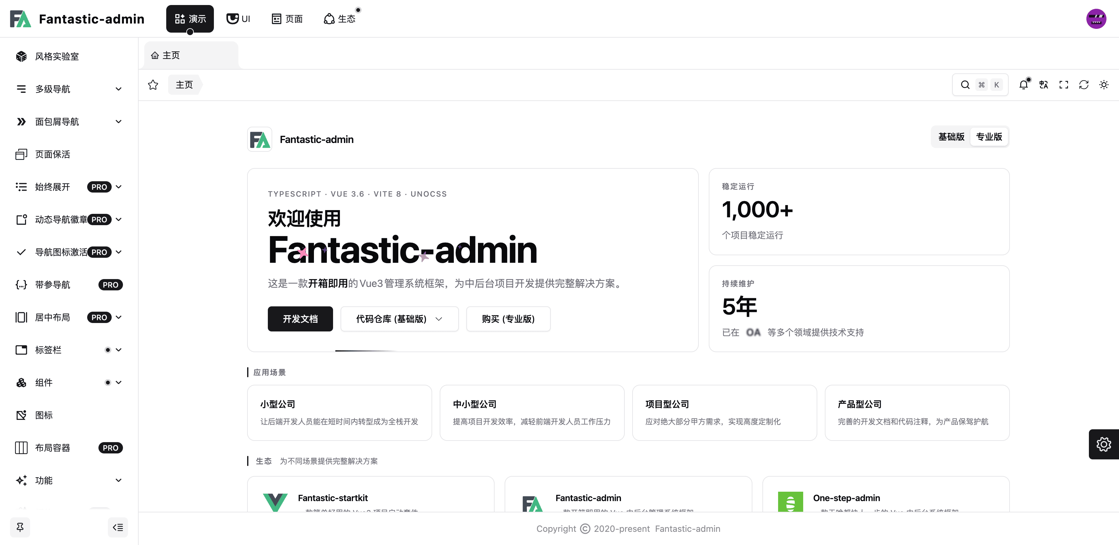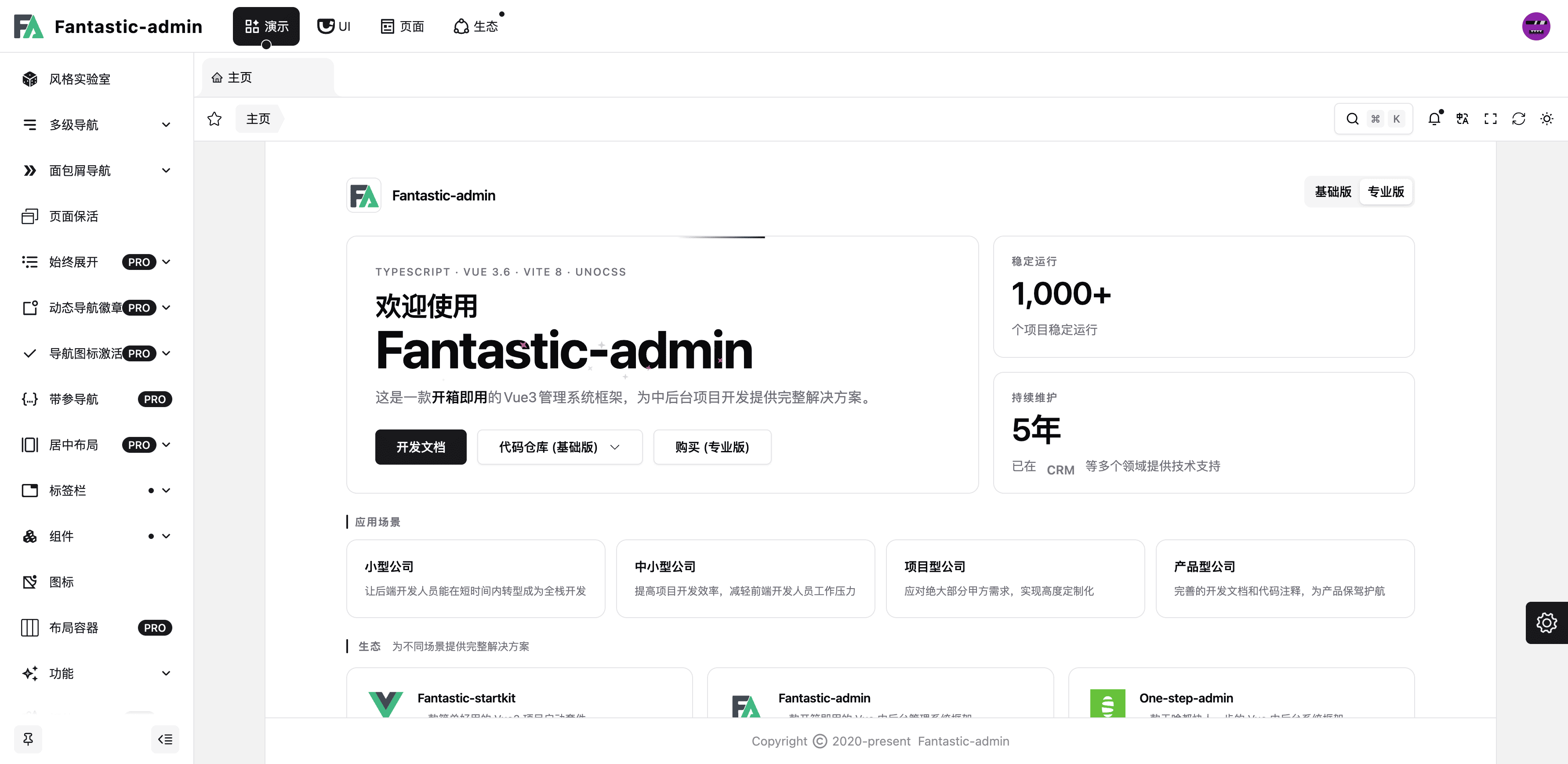 })主页是框架的欢迎页,即登录后的第一个页面,该页面无需开发者手动配置路由。