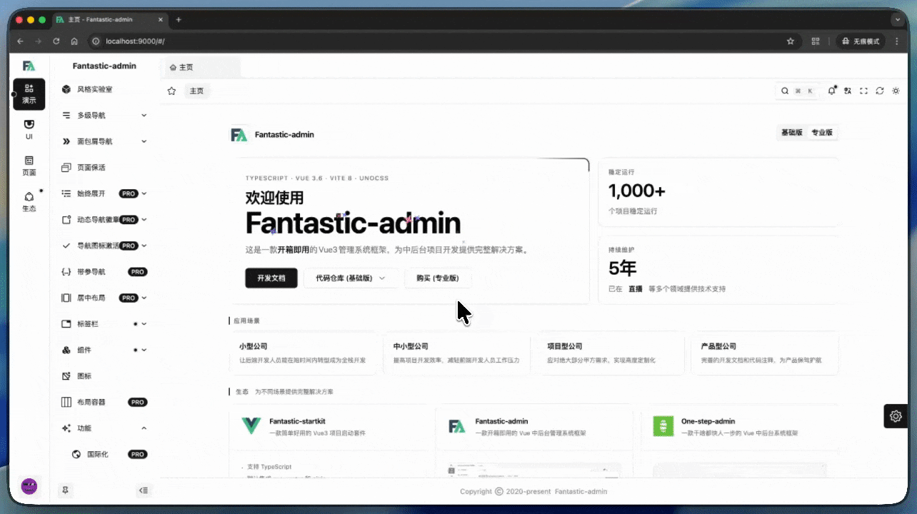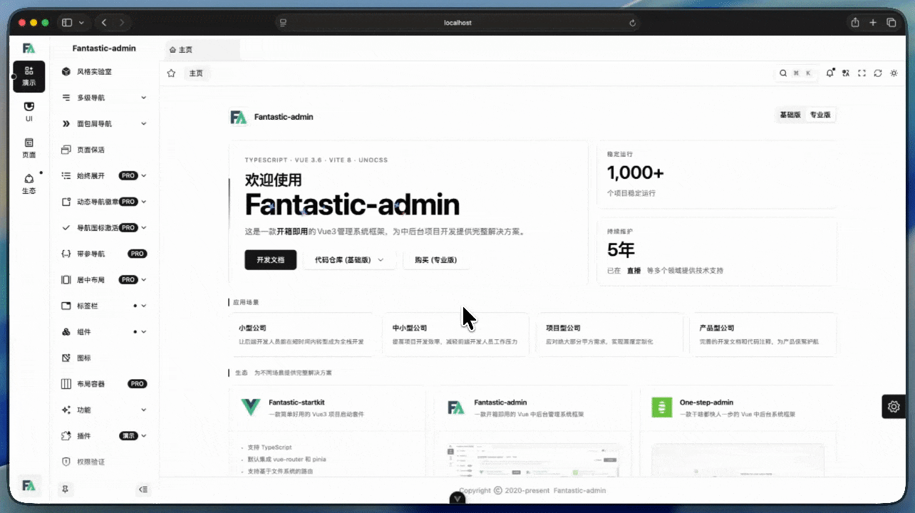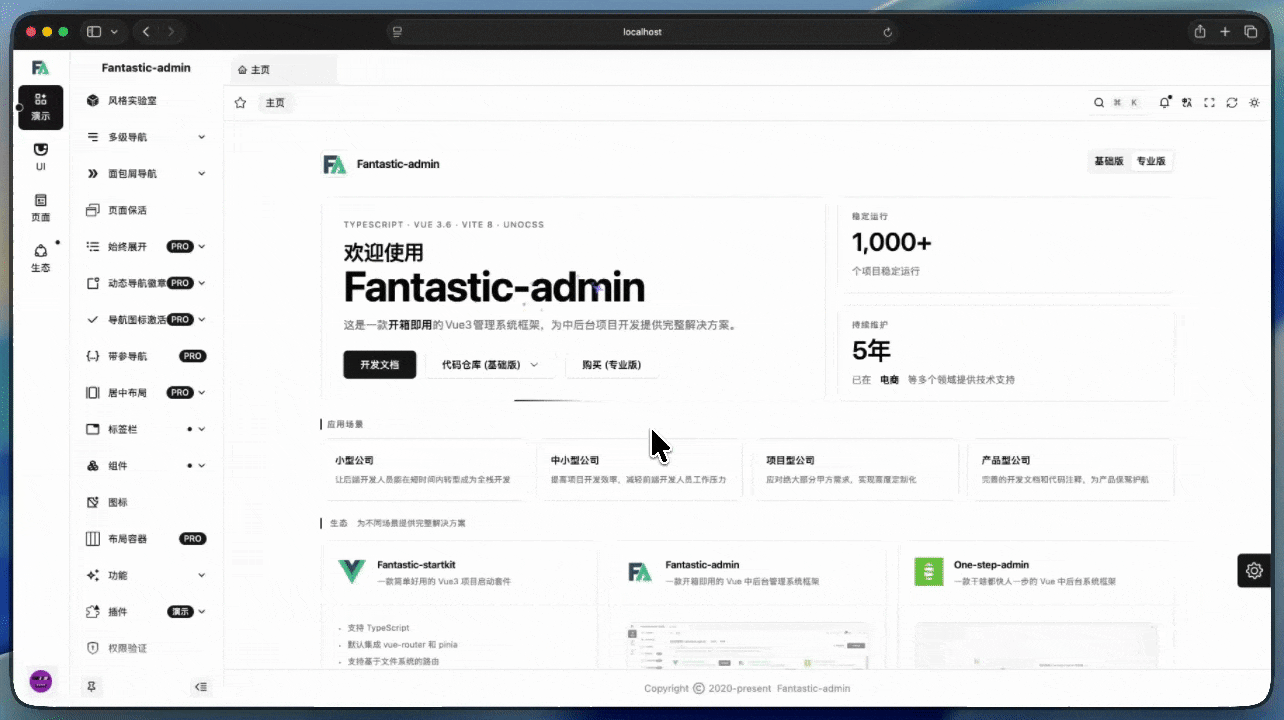 })主页是框架的欢迎页,即登录后的第一个页面,该页面无需开发者手动配置路由。