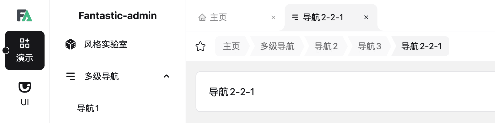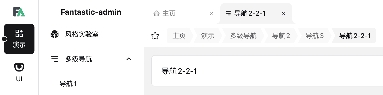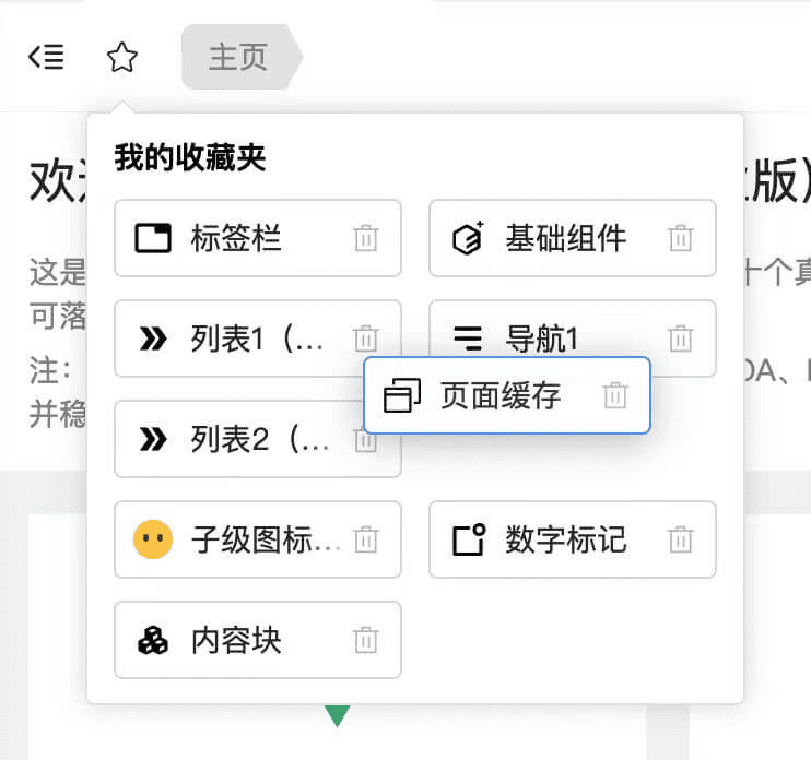 })开启后可将常用的导航菜单添加进收藏夹,方便快速访问,数据存储在浏览器 localStorage 中。