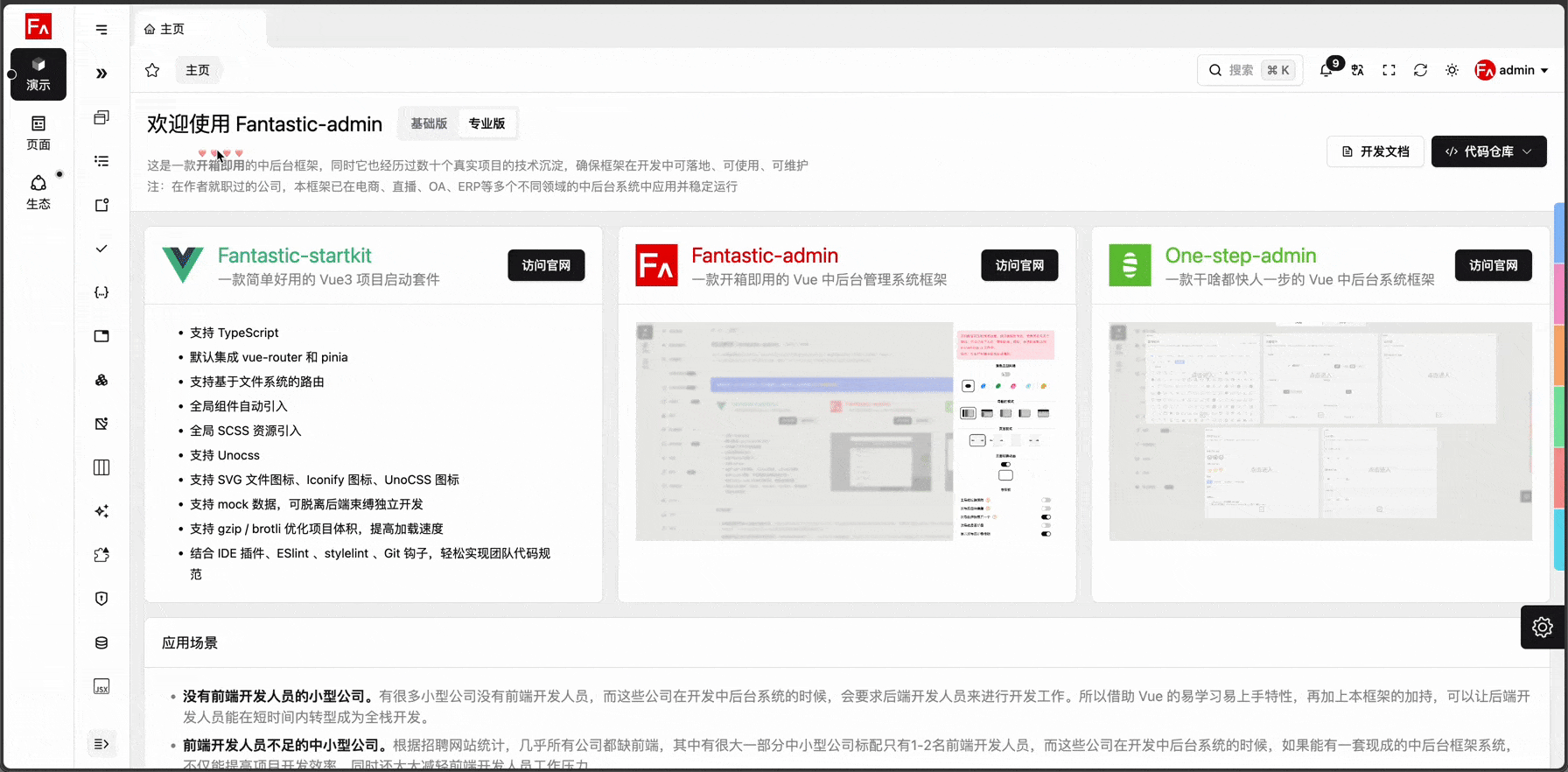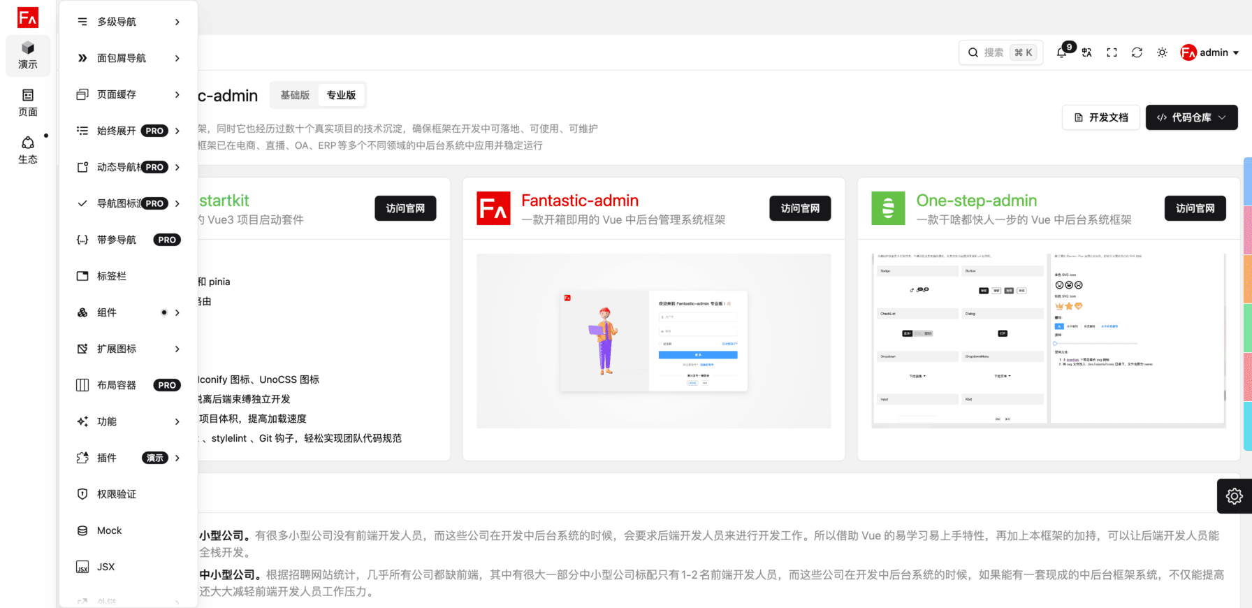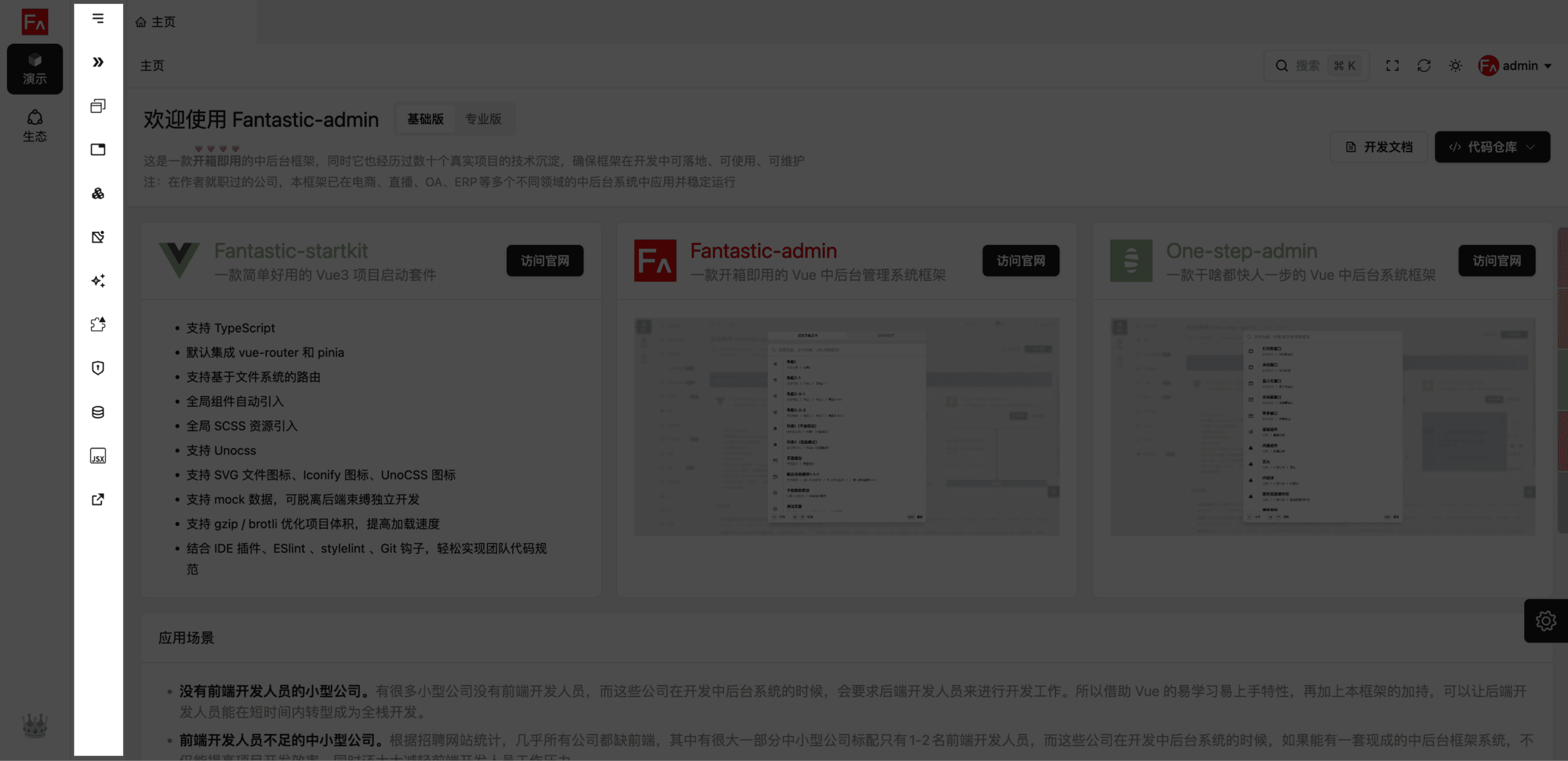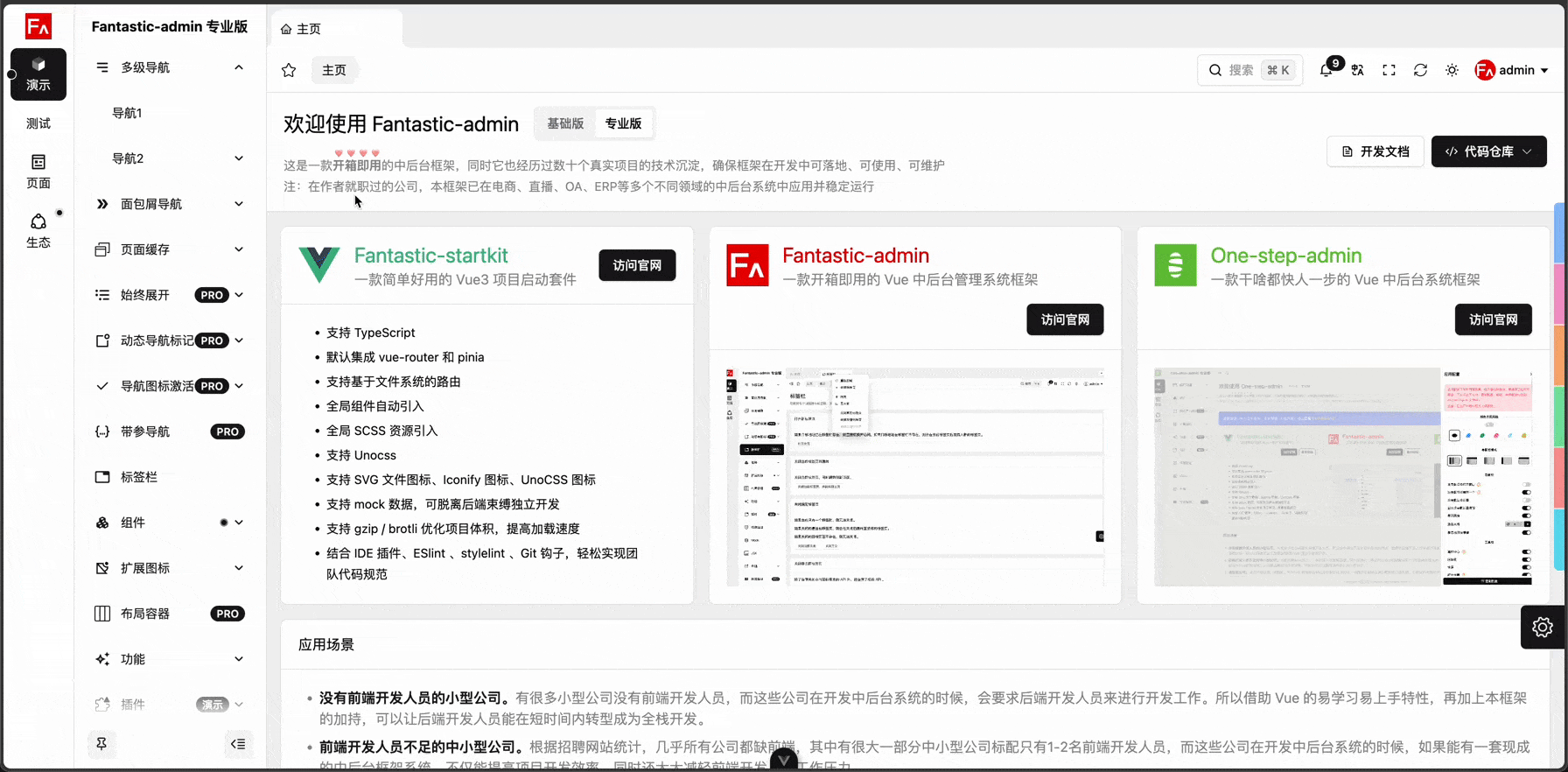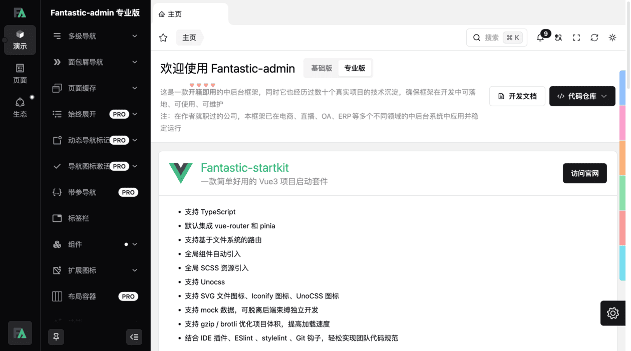 * @可选值 `'single'` 侧边栏模式(无主导航)