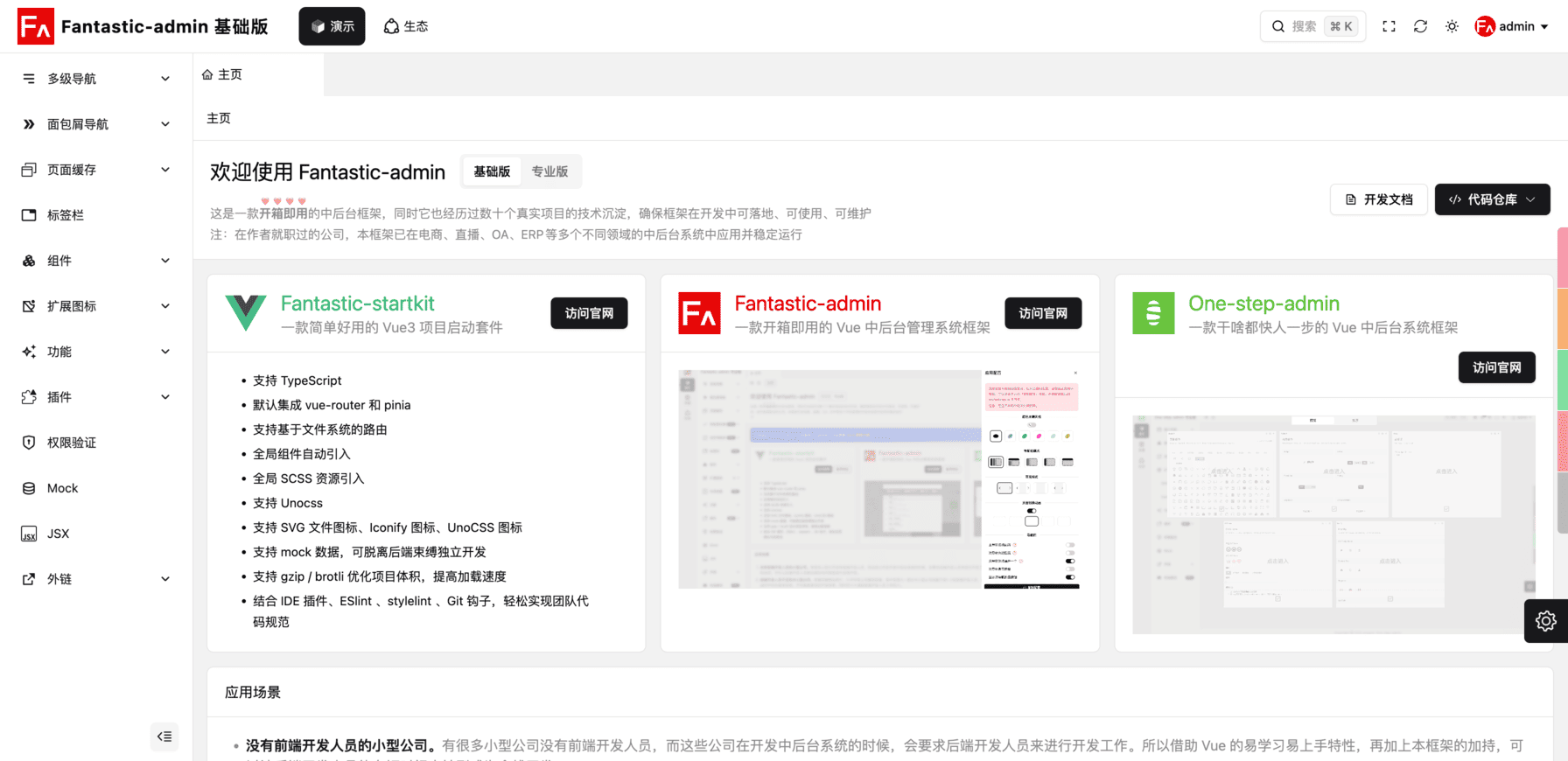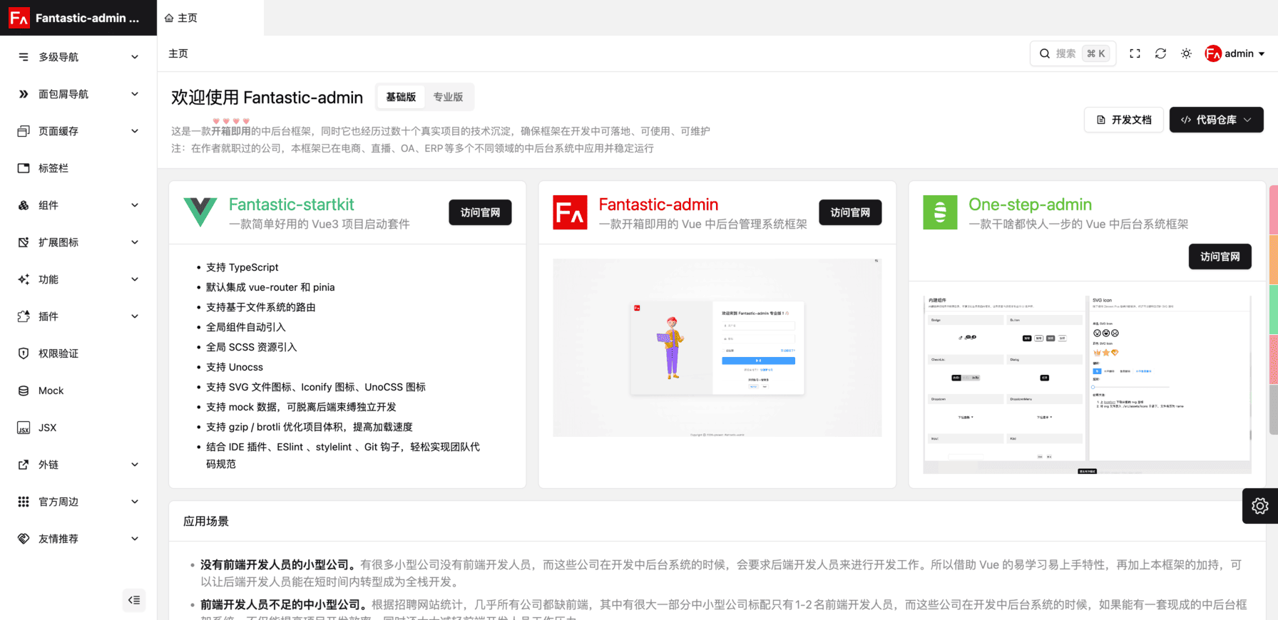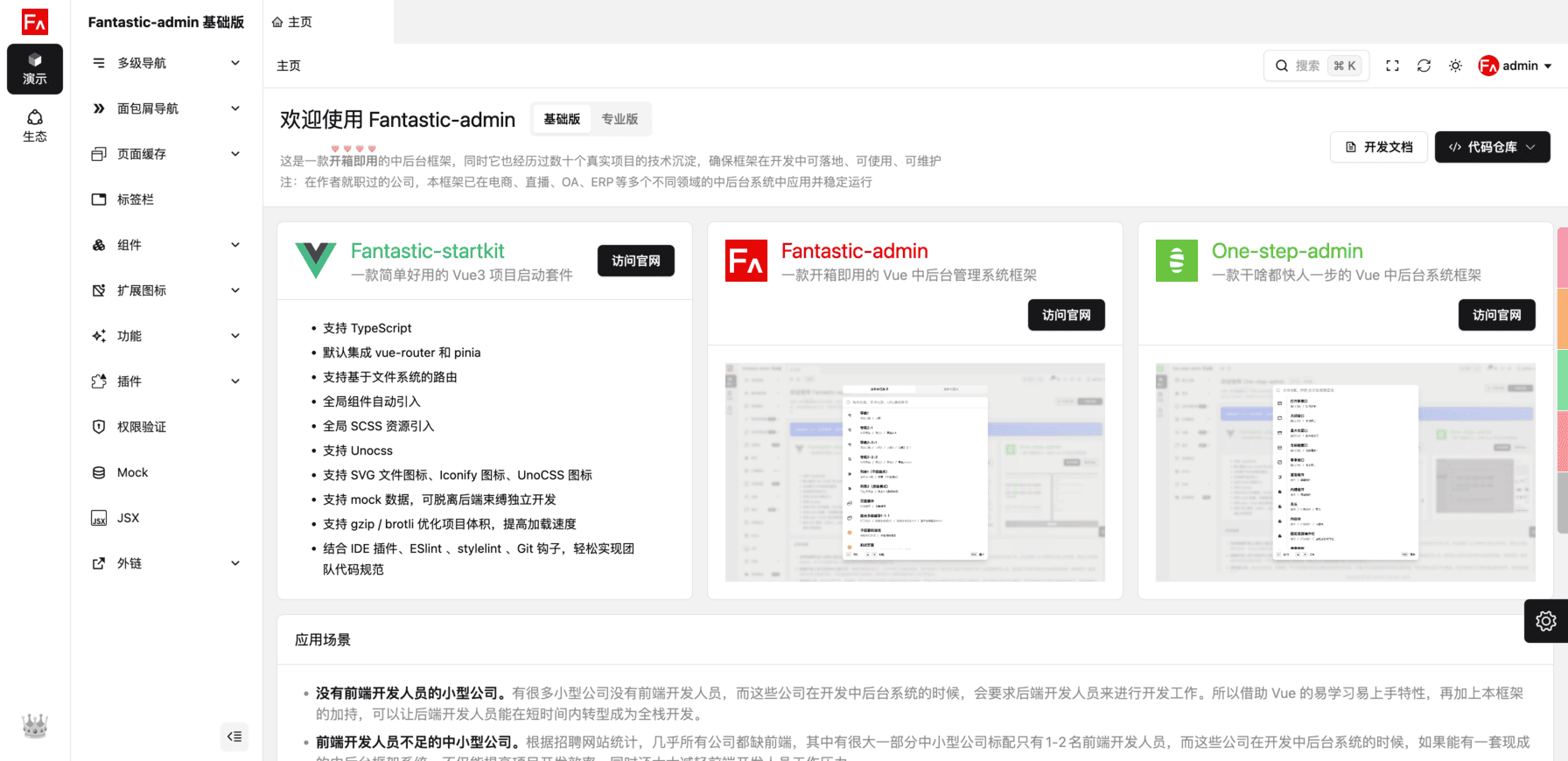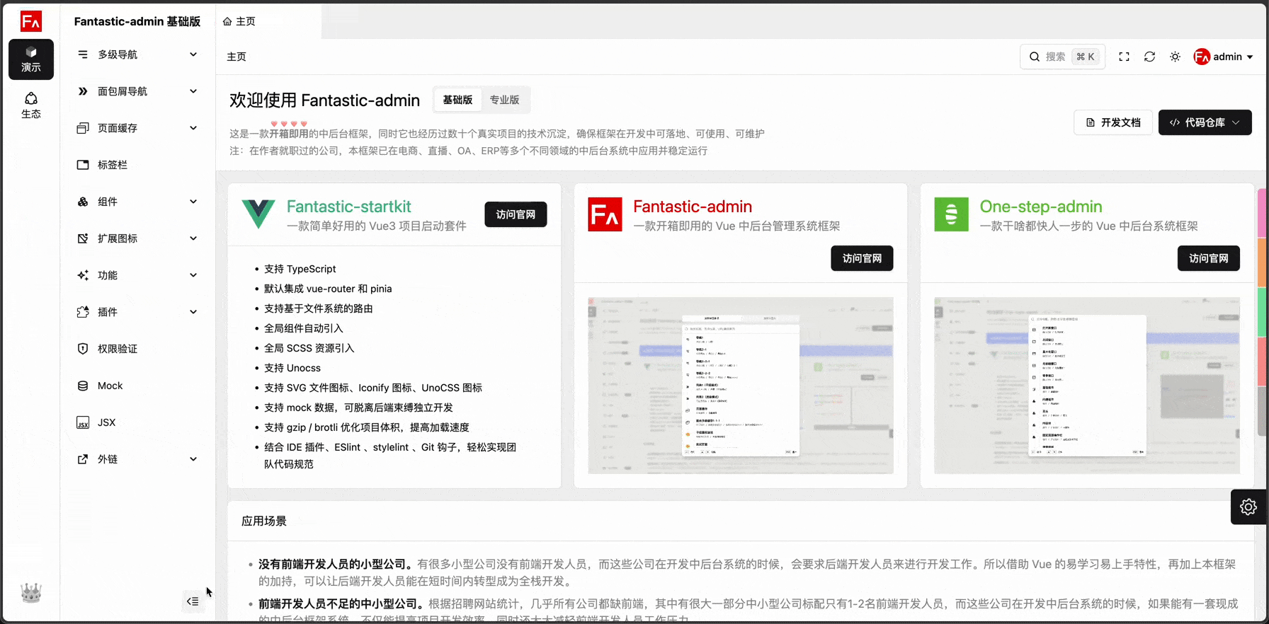 * @可选值 `'single'` 侧边栏模式(无主导航)