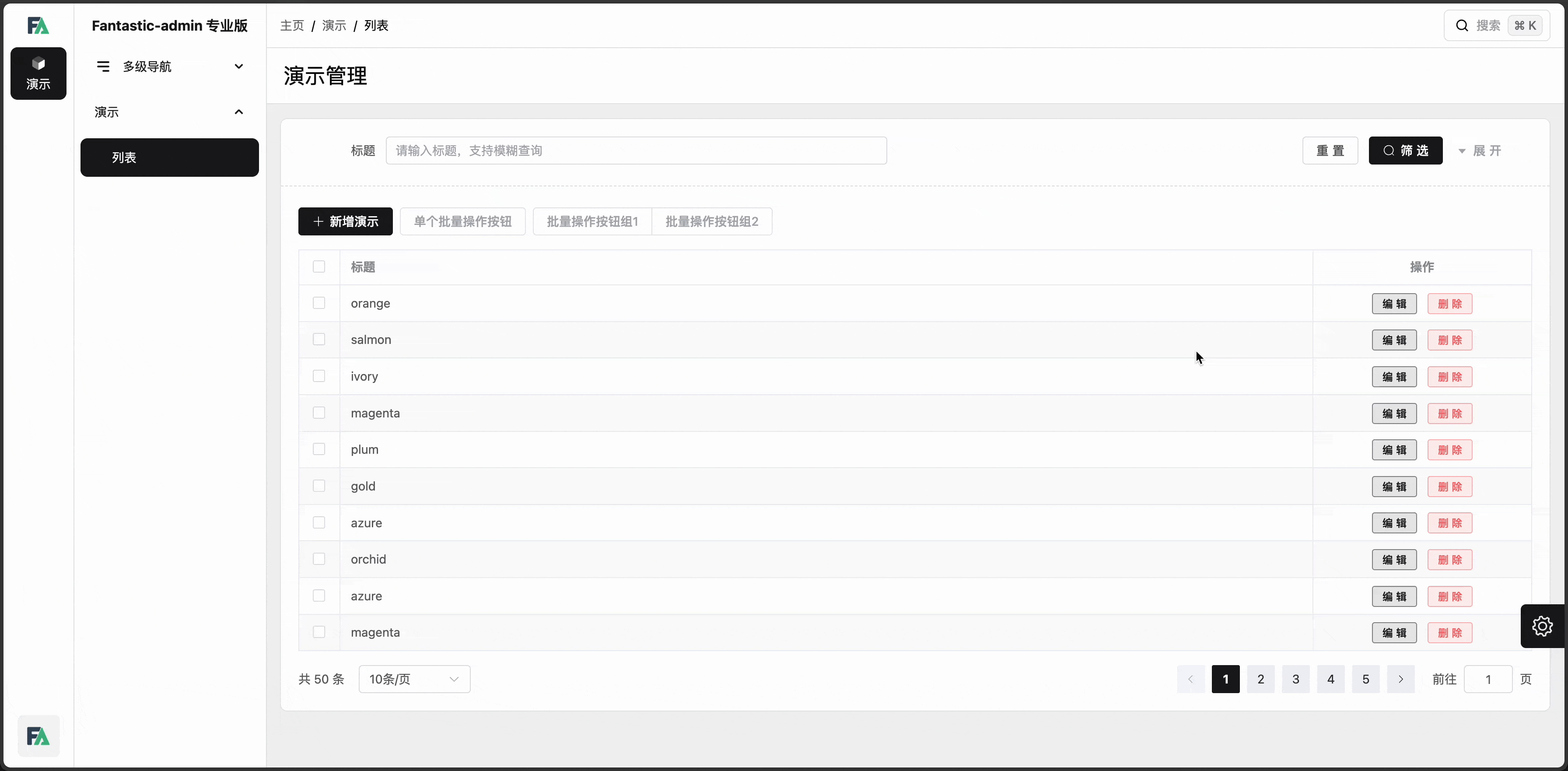 在《代码文件自动生成 - module》里介绍了如何快速生成一个标准模块,这个标准模块是一个最基础的 CURD 模块,它包含列表页和编辑页,同时提供了搜索和删除的功能,并且同时也可以生成对应的 mock 文件,在这基础上可以更方便的进行业务扩展。