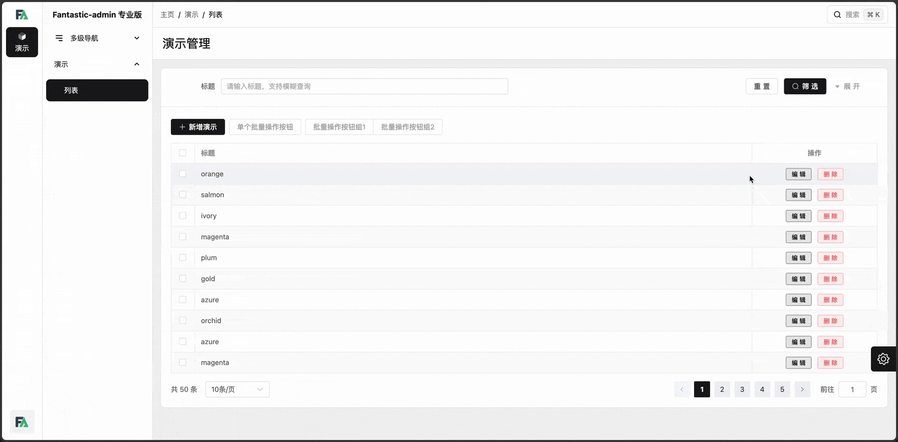 功能部分的介绍主要还是要看代码,先从列表页 list.vue