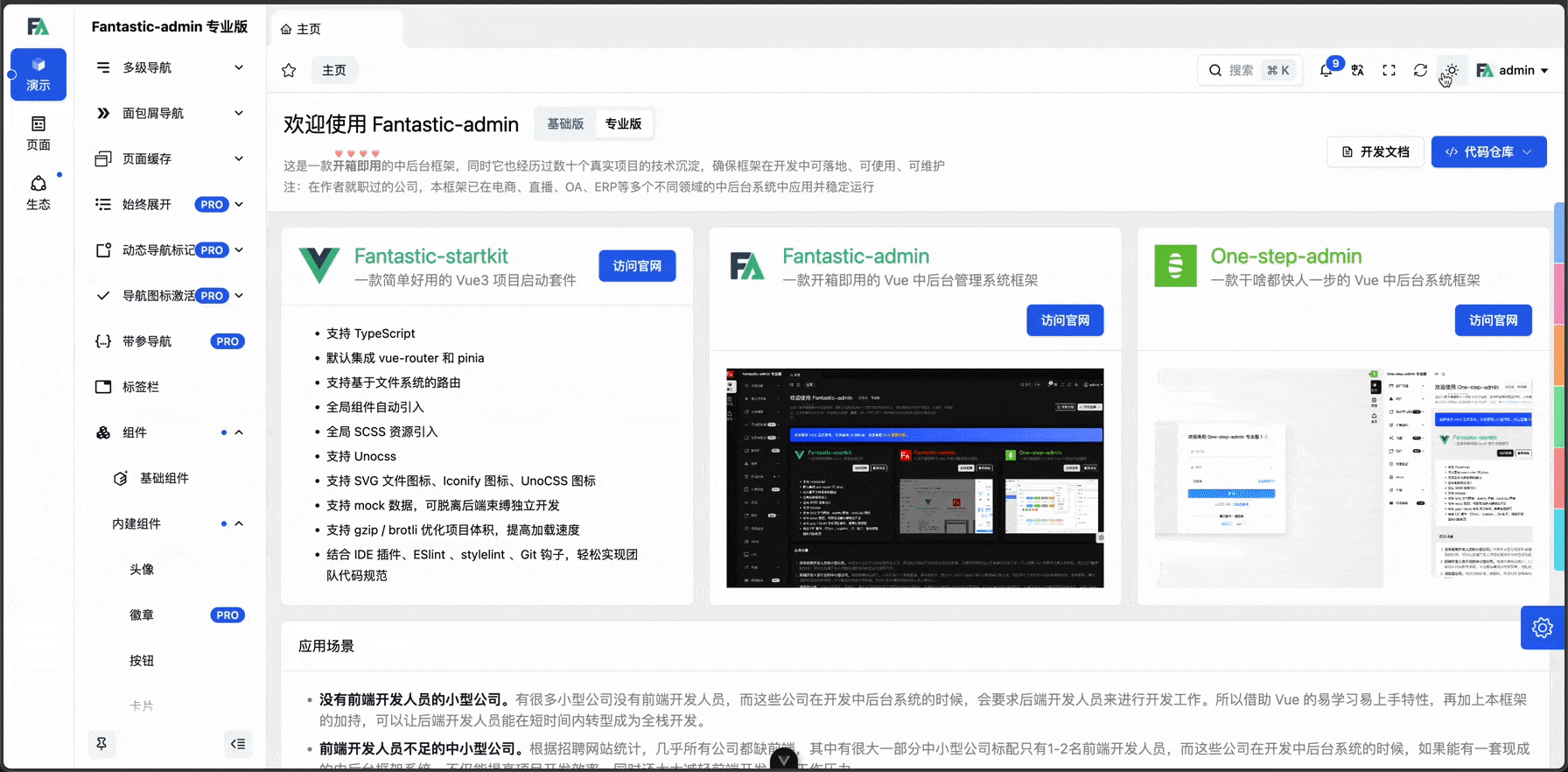 专业版 提供了 8 套主题,每套主题都支持明亮和暗黑两种模式,并且主题支持在运行时共存,可实现动态切换。